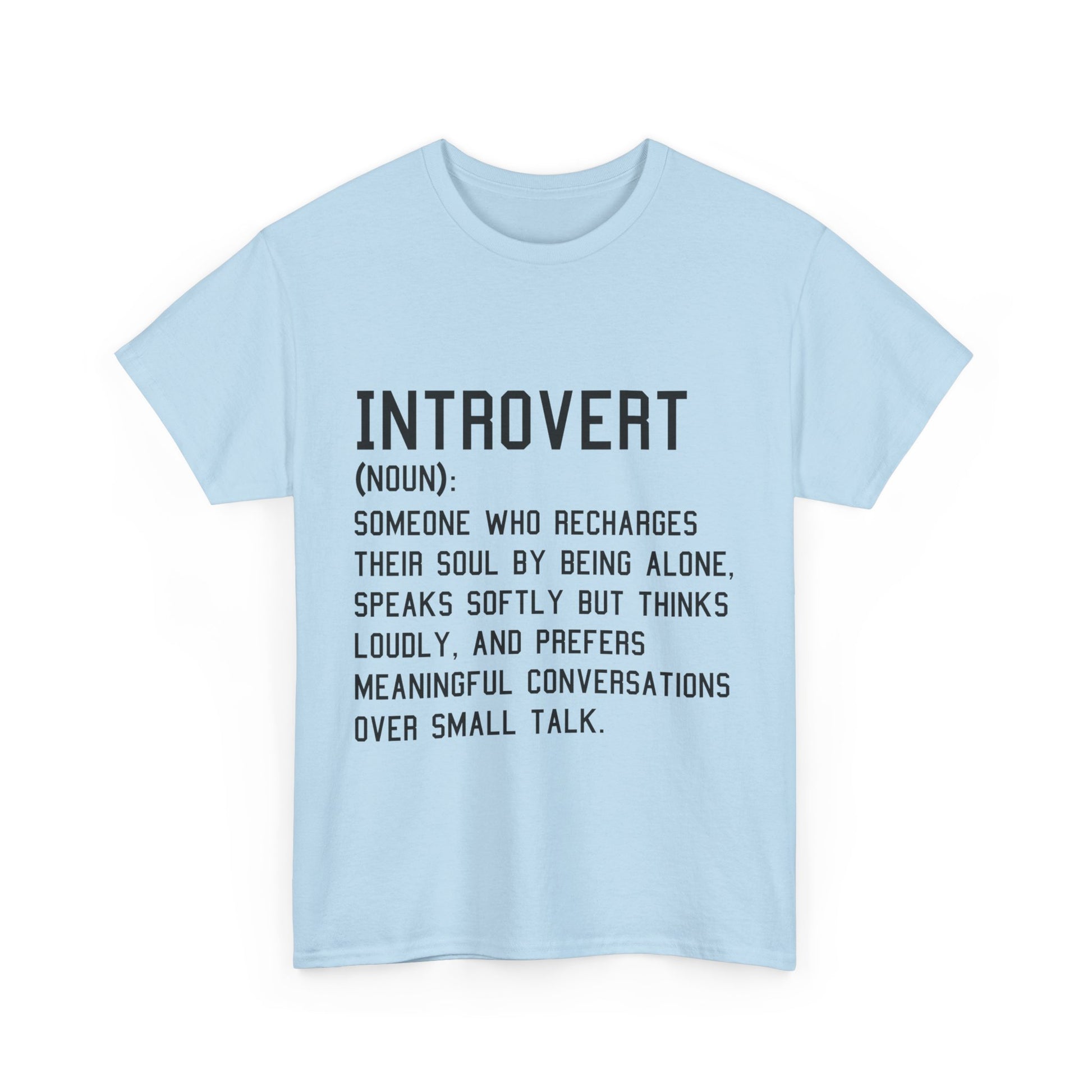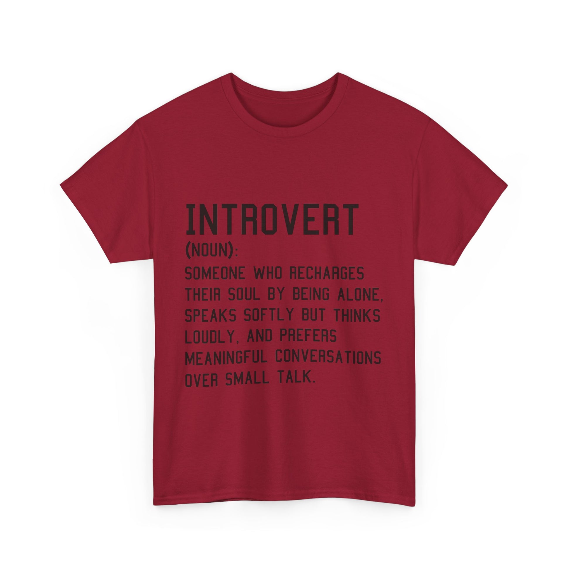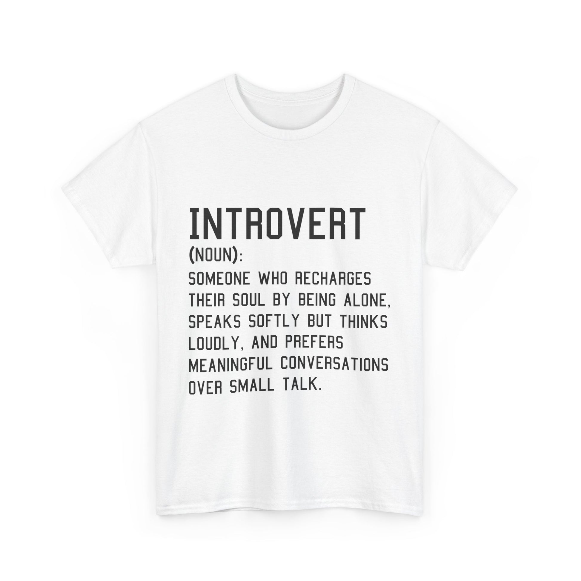 Introducing the ultimate Unisex Heavy Cotton Tee – your go-to wardrobe staple that seamlessly merges comfort with style. This shirt is crafted for those who appreciate a casual yet chic look. Perfect for introverts and anyone who values meaningful connections over superficial banter, this tee embodies a relaxed vibe that allows you to express your personality effortlessly. It's suitable for various occasions, from relaxed gatherings to casual outings, making it ideal for friends’ meet-ups or cozy nights in. Celebrate self-expression this holiday season, or gift it to a loved one who resonates with its message on introspection and thoughtful dialogue.