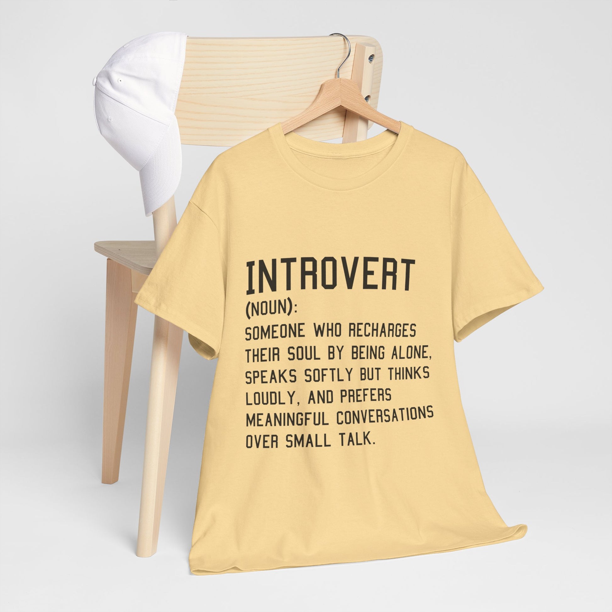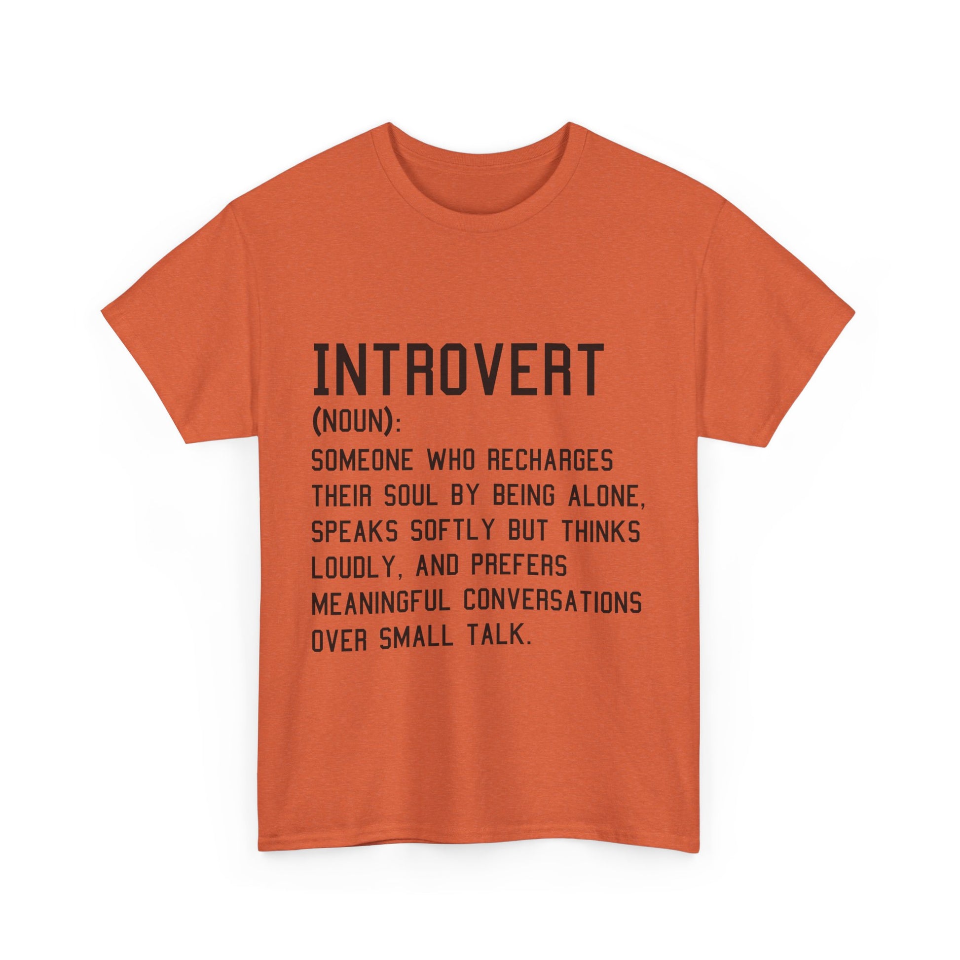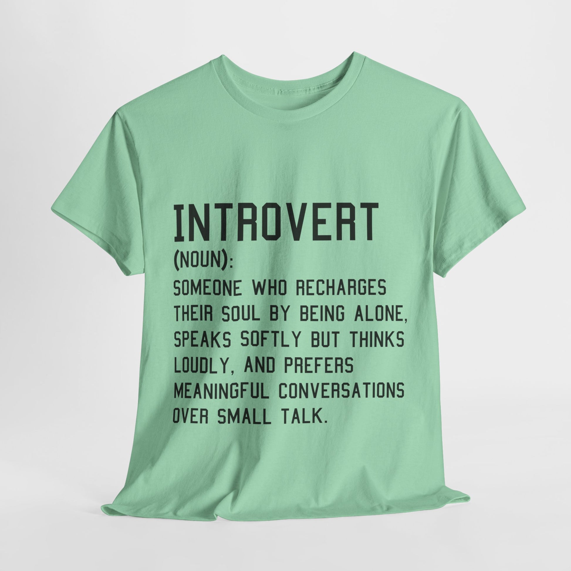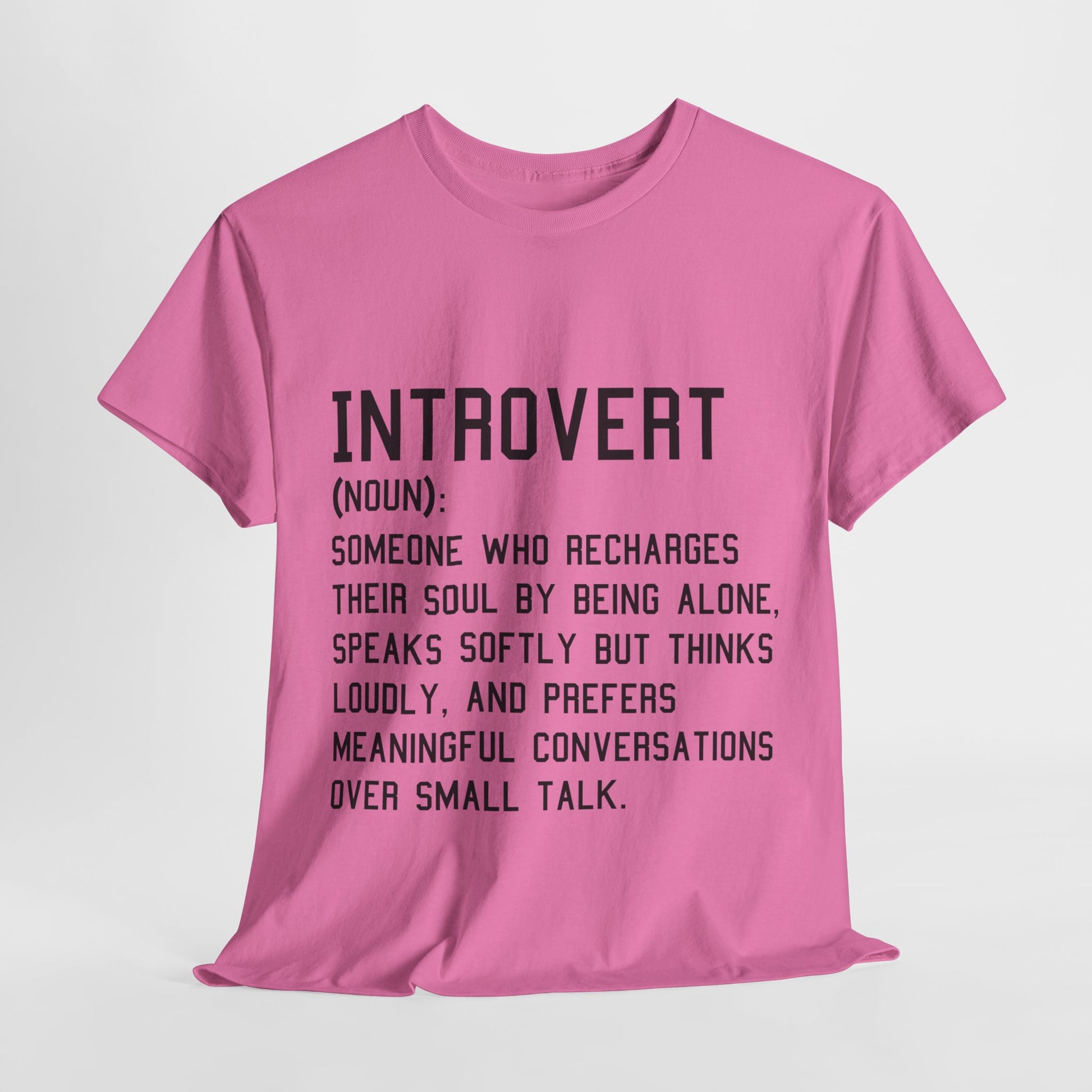 Introducing the ultimate Unisex Heavy Cotton Tee – your go-to wardrobe staple that seamlessly merges comfort with style. This shirt is crafted for those who appreciate a casual yet chic look. Perfect for introverts and anyone who values meaningful connections over superficial banter, this tee embodies a relaxed vibe that allows you to express your personality effortlessly. It's suitable for various occasions, from relaxed gatherings to casual outings, making it ideal for friends’ meet-ups or cozy nights in. Celebrate self-expression this holiday season, or gift it to a loved one who resonates with its message on introspection and thoughtful dialogue.
